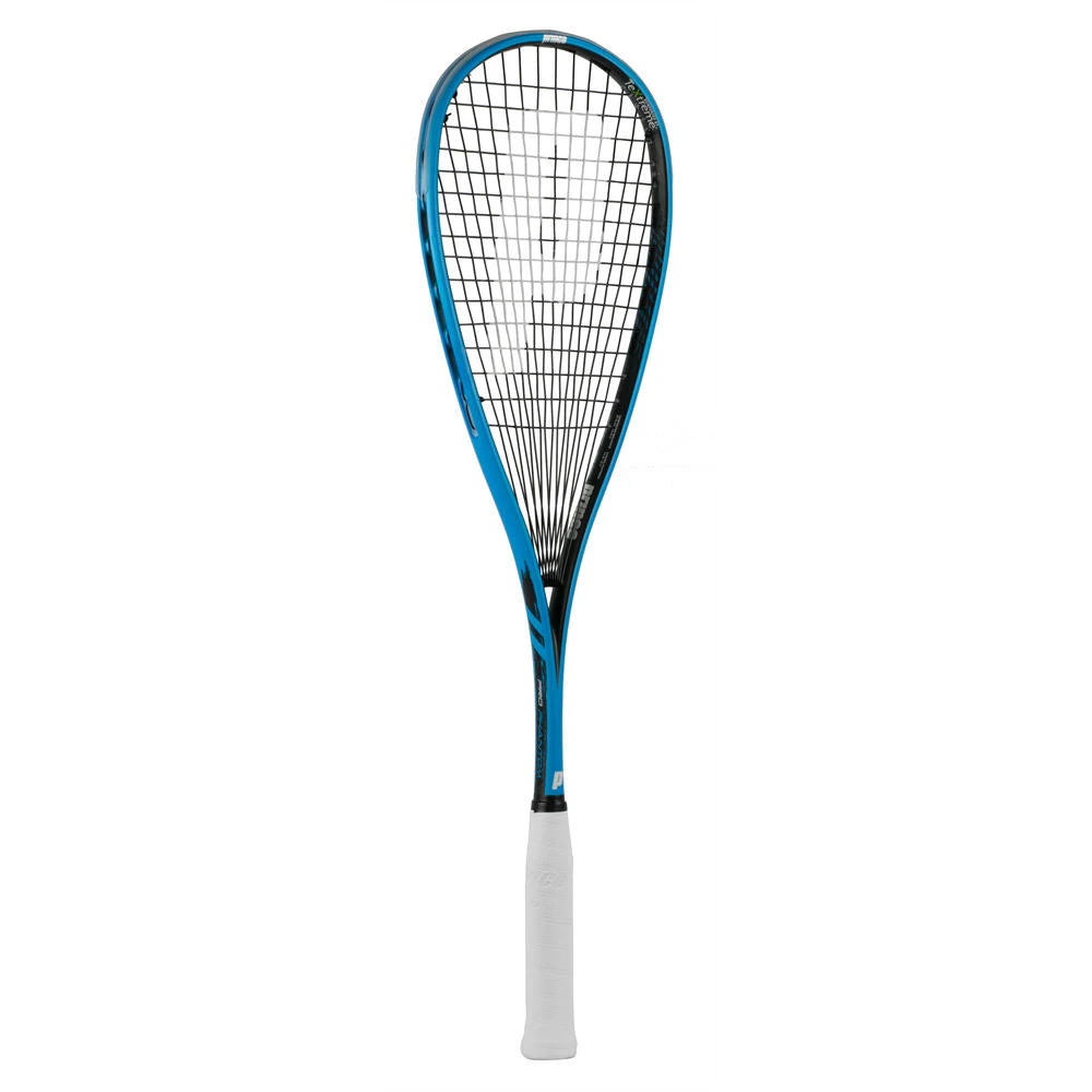 Prince’s most powerful squash racquet in its Pro Series, the Prince TeXtreme Pro Phantom 950 has two of Prince’s most popular technologies. The power of this racquet comes from its large sculpted O3 grommets which makes the racquet more aerodynamic and increases the size of the racquet’s sweet spot because of more string movement. The Power Ring in the Phantom’s throat also adds to the strings’ ability to move more which increases power potential. The 16×16 string pattern is fanned and cuts the ball effectively when trying to put balls into the nick or make a drop shot from the back wall. TeXtreme technology has been added to crown of the racquet head for added stability, and works to prevent torque when making impact with the ball. Overall, the Pro Phantom is a great racquet fro players looking to for a lot of power while also feeling connected to every shot.
