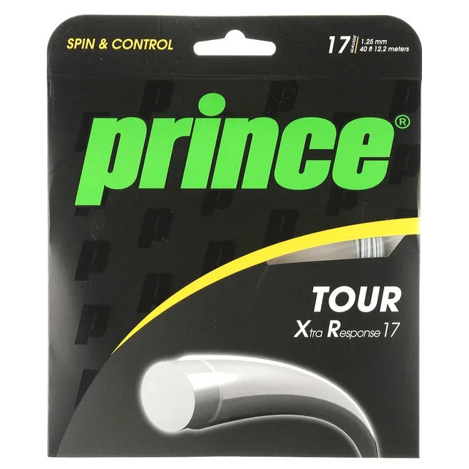 Prince Tour Xtra Response tennis string is a firm co-polyester monofilament that delivers control for powerful hitters. The low-power performance of this string lets you take big cuts at the ball without fear of over hitting. Constructed with a round profile that delivers great grip on the ball, Prince Tour Xtra Response is recommended to intermediate and advanced players who want a durable co-poly with surgical targeting.