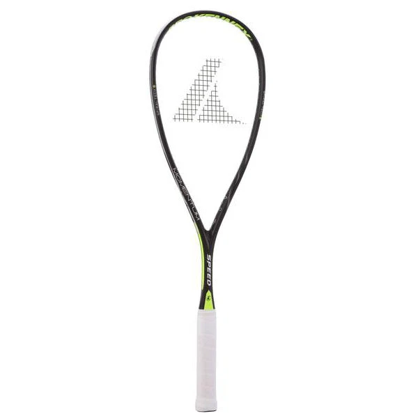 The ProKennex Momentum Speed is designed for traditionalists that want a lightning fast racquet to hunt volleys and put tremendous pressure on their opponents. This racquet has a tear drop design to amplify power and a 14×18 string pattern for improved cut that controls pace. The even balance and lightweight design make this an attacking squash player’s dream so they can take balls very early and play with a lot of holds and deception to speed up the game when they want or slow it down at the right time. The SpiralTech Carbon design is durable and solid feeling so you can take this on court knowing that each shot is going to have pace and power with a solid feel.