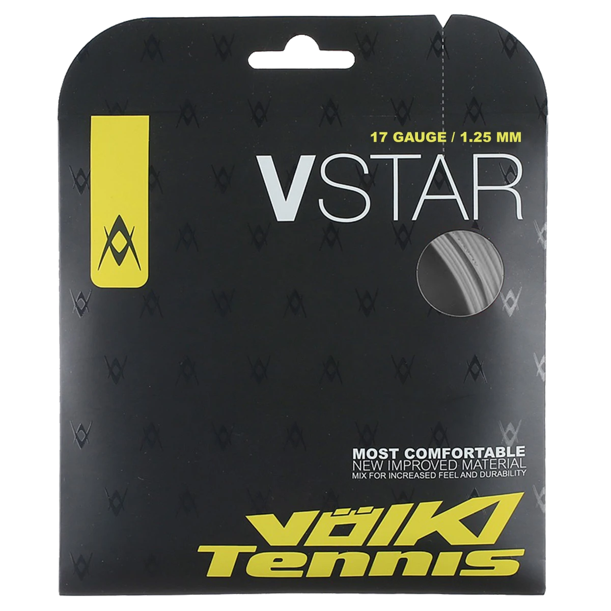 Volkl V-Star is a round poly with great durability and tension maintenance. V-Star delivers comfort and control with excellent response. the round shape of the string makes it a great option for hybrids and has great snap back as you come through shots. Great off the baseline, Volkl V-Star performs great and holds tension well for reliable performance.